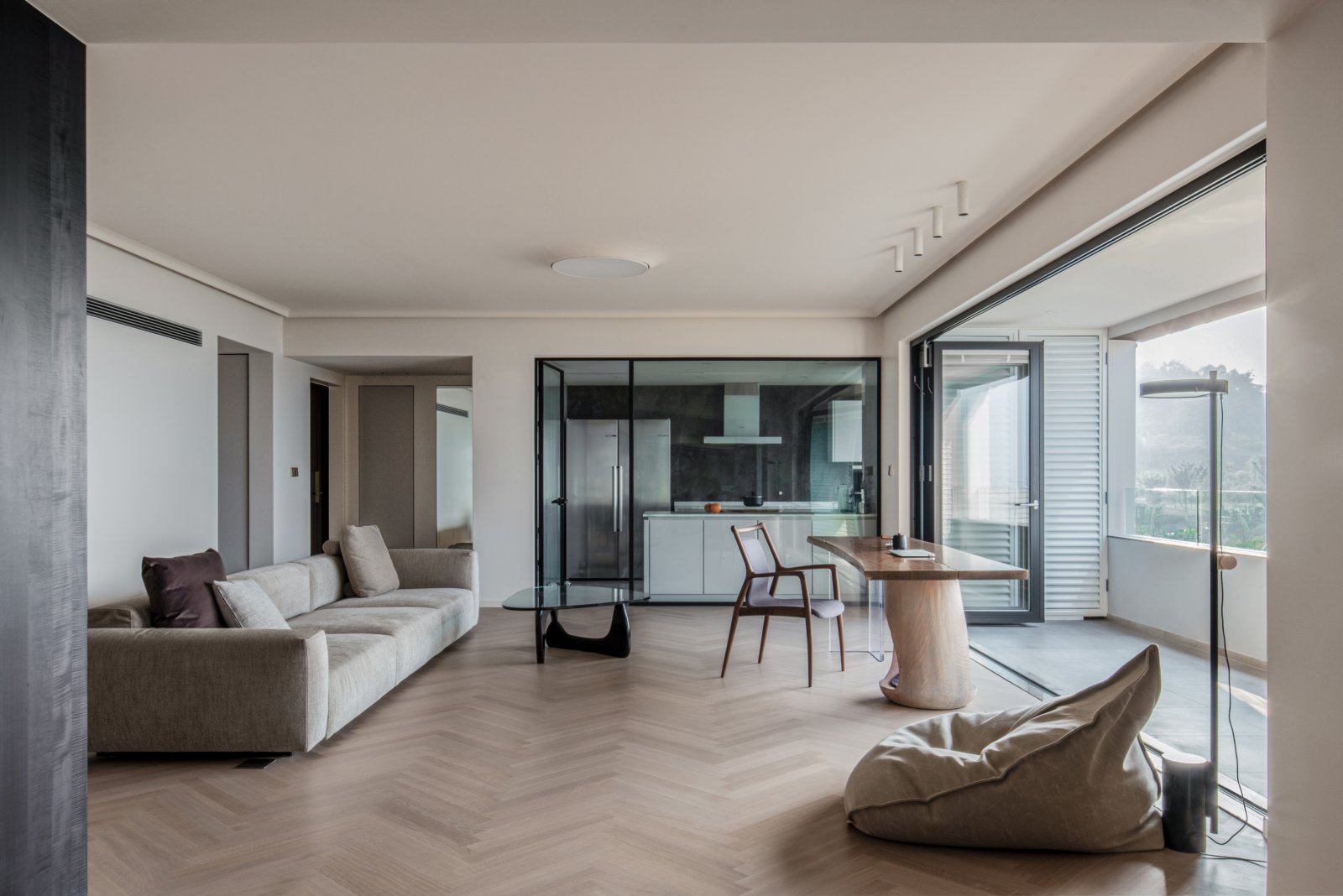 室內客廳裝修效果圖,大的落地窗為客廳帶來了充足的自然光線,簡約的白色布藝沙發,舒適清爽