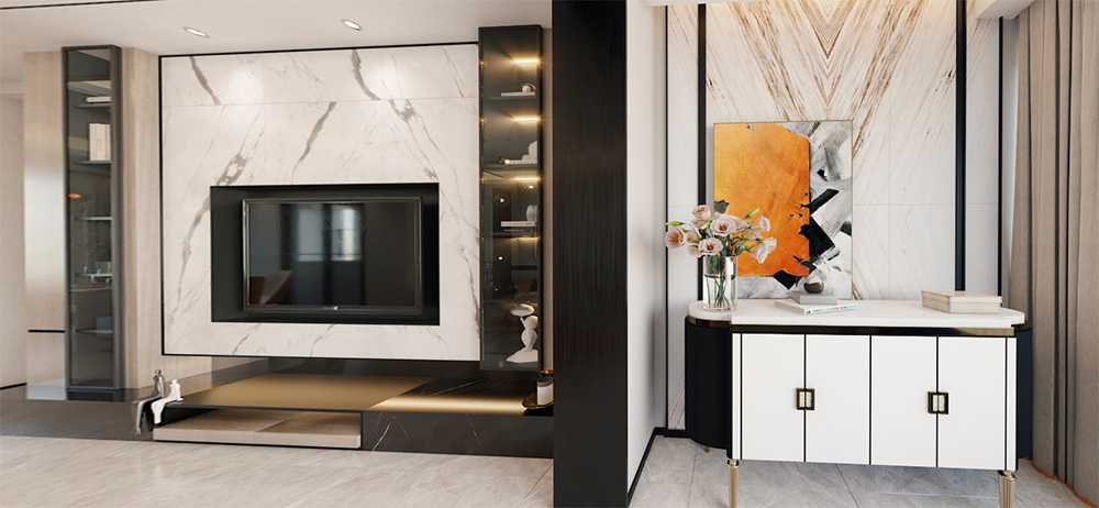 佛山潘村公寓四居輕奢風格裝修效果圖