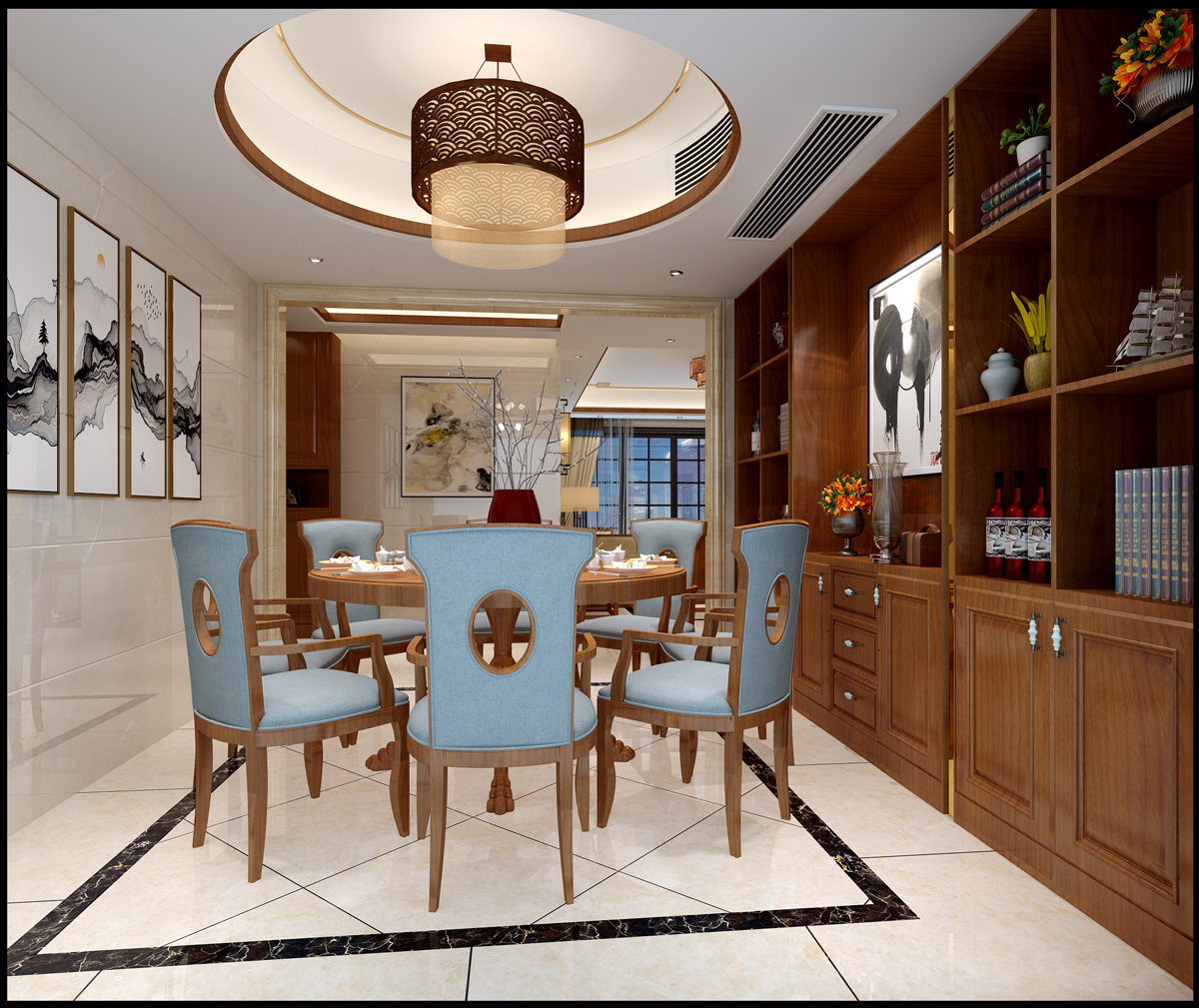 上饒合生君景灣三居新中式風格裝修效果圖