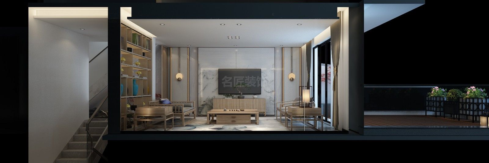 惠州201-300平米新中式風格景安花園室內設計效果圖