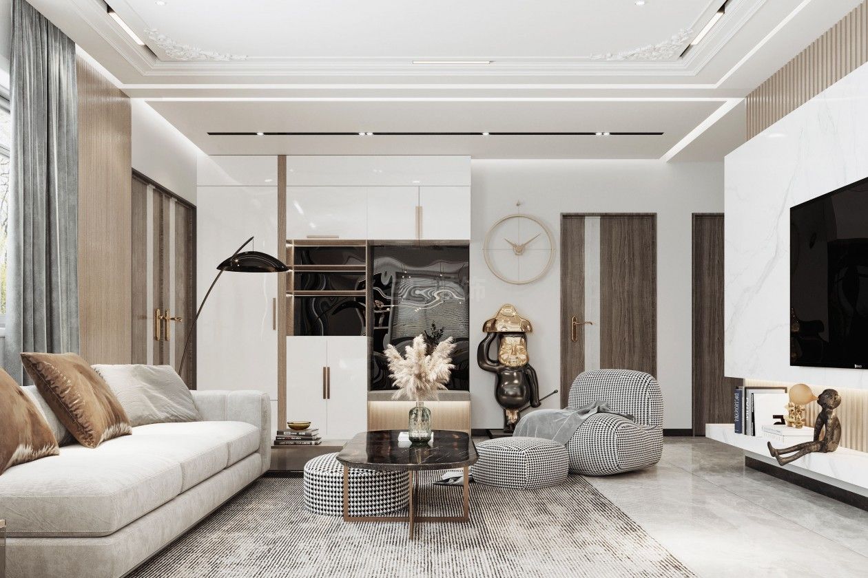輕奢風格100平米以下三居室