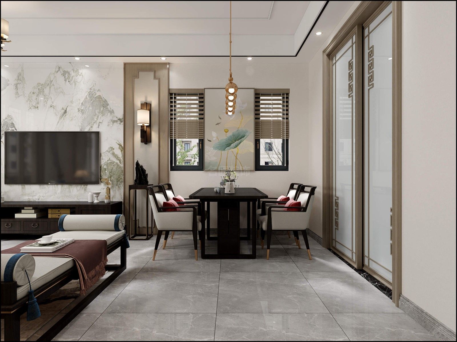 中山101-200平米新中式風格國韻飄香室內設計效果圖