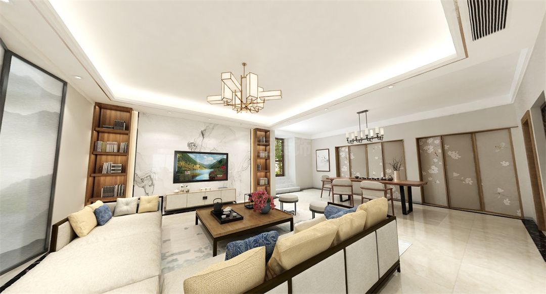 中山保利林語別墅新中式風格裝修效果圖