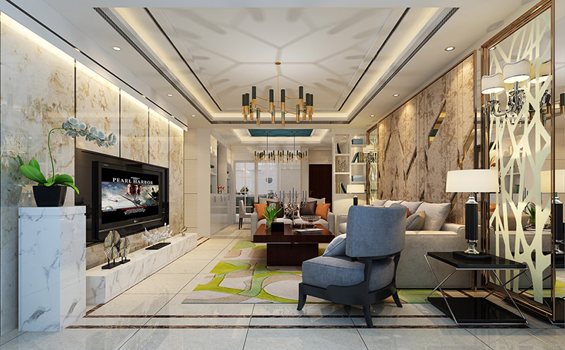 內江綠島銀座三居現代簡約風格裝修效果圖