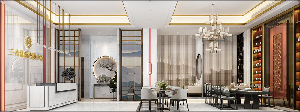 普洱三合北苑辦公空間新中式風格裝修效果圖