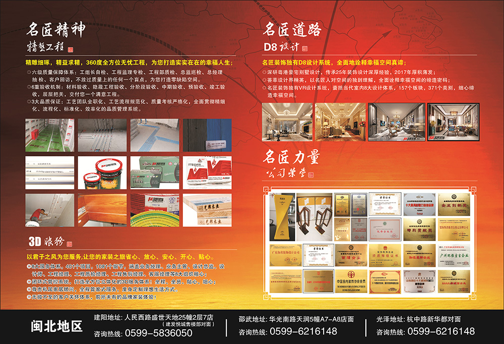 (2)精雕細(xì)琢,名匠本色。名匠以優(yōu)質(zhì)的主材、輔材和口碑,服務(wù)好每一個(gè)客戶。