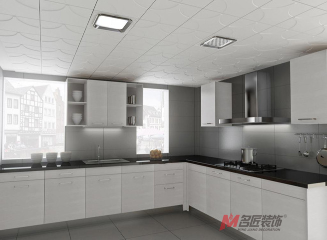 廚房的吊頂最好采用防水的鋁扣板安裝,這樣可以避免吊頂因水蒸氣或油煙變得潮濕。